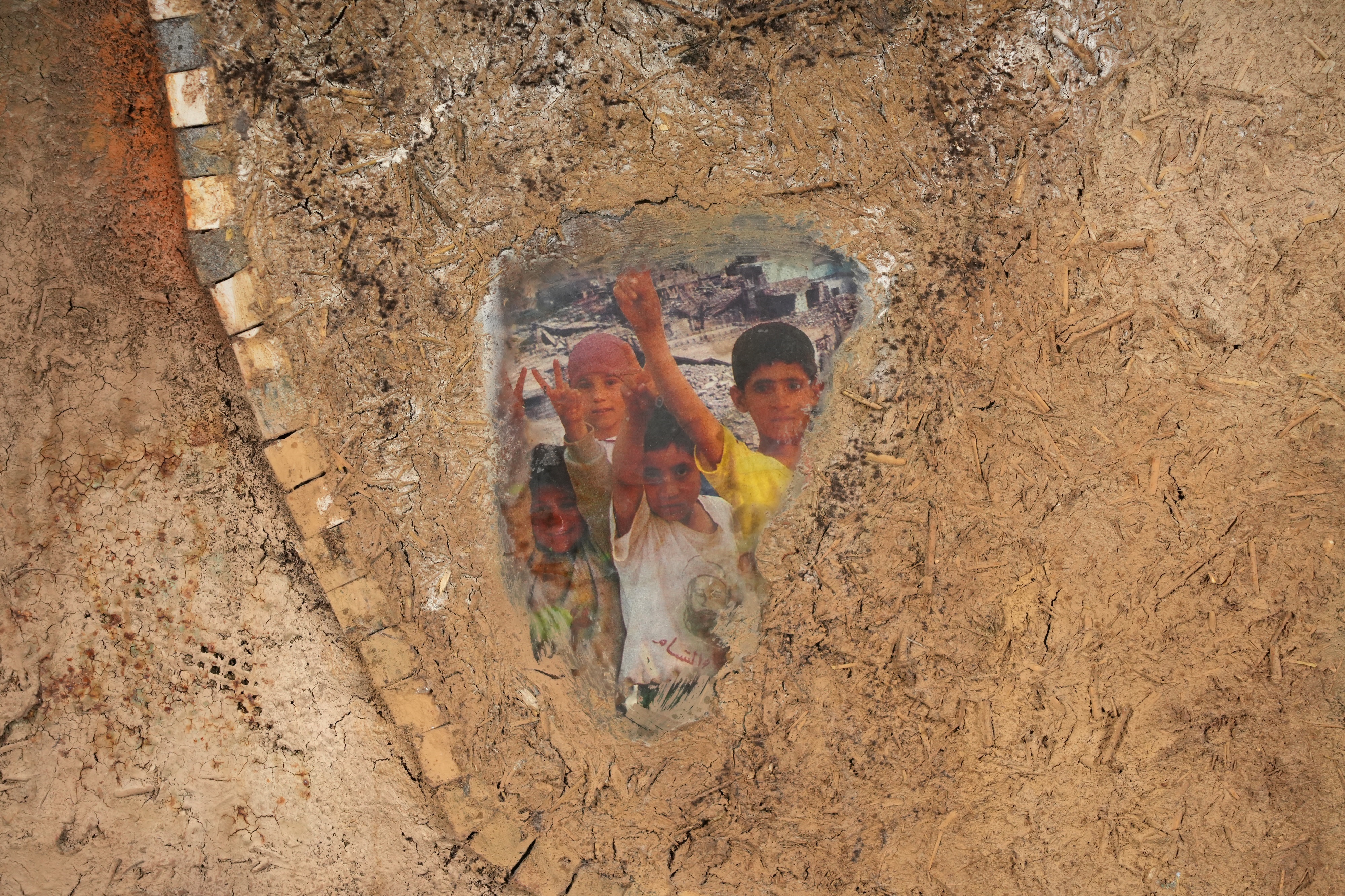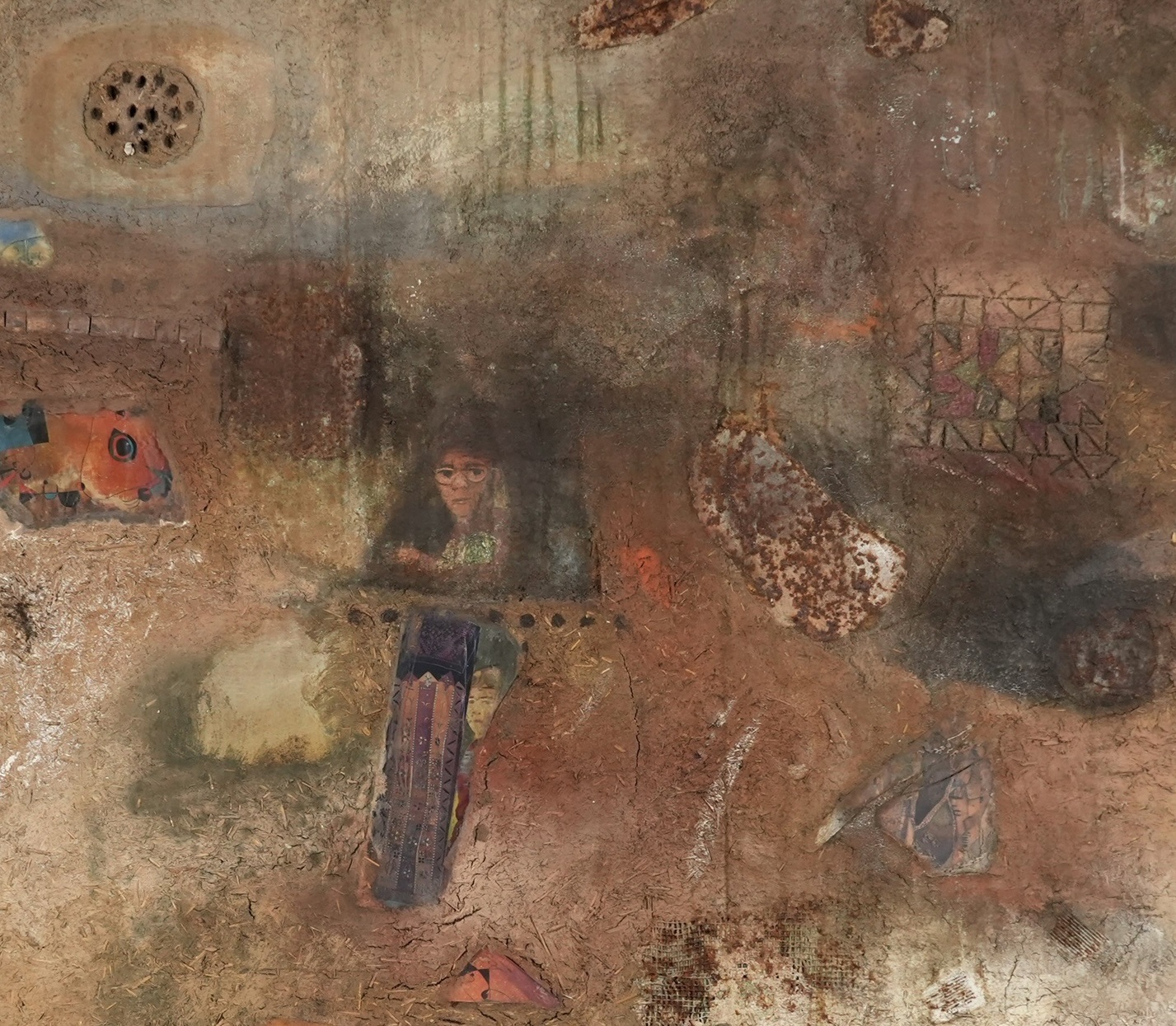 The medium is also of considerable personal importance to Mansour himself. Proud of his humble, rural origins in Birzeit, Mansour recalls his childhood creating vessels (such as those for cooking, or beehives) out of the earth with his grandmother. This intimacy with the material to create objects for everyday use becomes clear in the sculptural sections of the work, shaped to evoke the forms of people and objects.